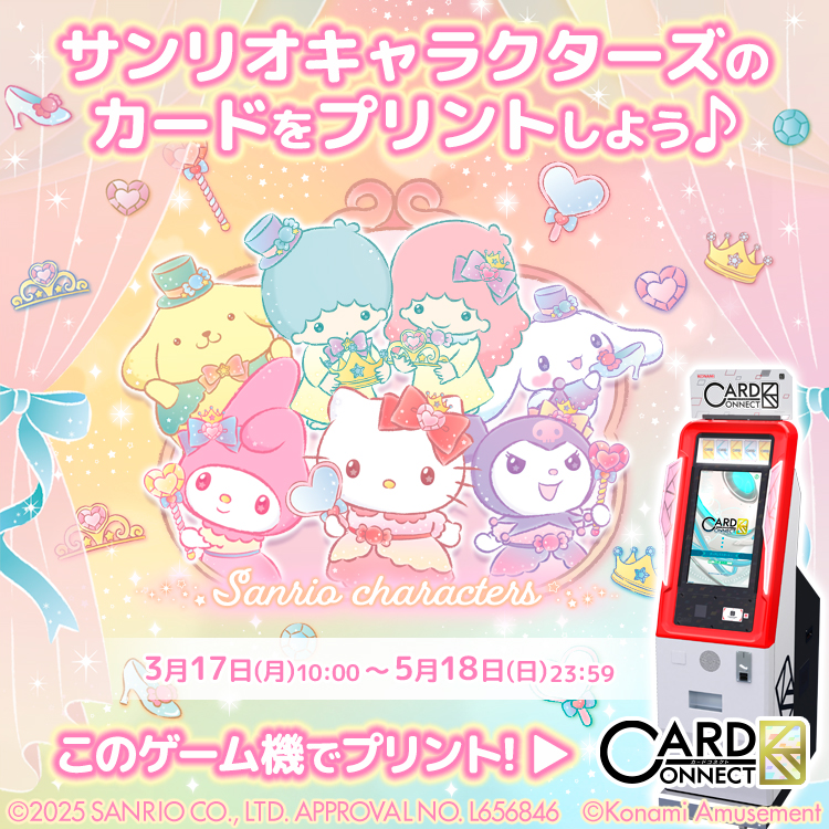著作権表記:©2025 SANRIO CO., LTD.APPROVAL NO.L656846 ©Konami Amusement