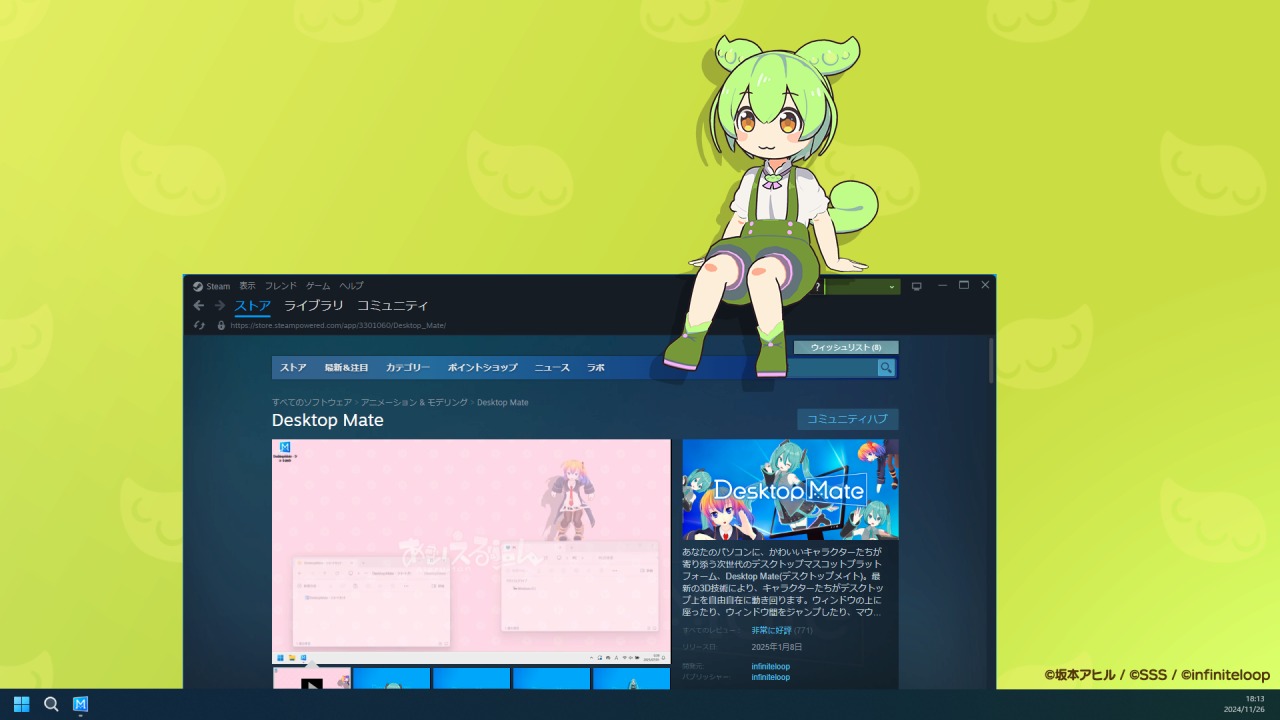 インフィニットループは、デスクトップマスコットプラットフォーム「Desktop Mate」の第3弾DLCとして「ずんだもん」を、2025年4月3日よりSteamで配信することを決定した。本日3月19日より、Steamストアページを公開する。