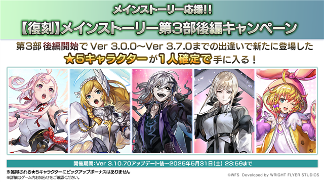 ■★5キャラクターが最大7人手に入る!メインストーリー応援キャンペーンなど復刻開催