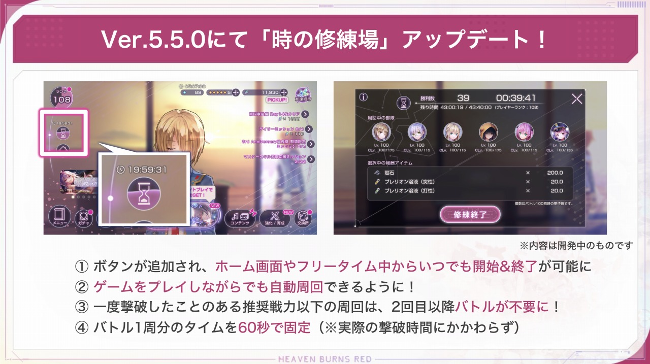 また、本日2025年3月19日にVer5.5.0アップデートを実施した。「時の修練場」や「アリーナ」の改善により、遊びやすくなったヘブバンを楽しんでほしい。