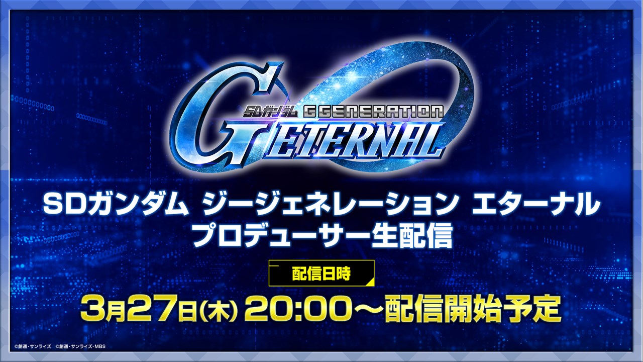 『SDガンダム ジージェネレーション エターナル』の運営チームから、気になるゲームの新情報を伝える配信番組を実施する。