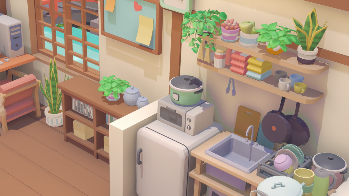 本作は、インテリアを配置して理想の部屋を作る楽しさと、穏やかに瞑想する癒しの感覚が融合した作品。水やりや害虫駆除など面倒な作業はなし。植物を自由に置いて、狭い部屋を緑あふれる空間へと変えていくことができる。