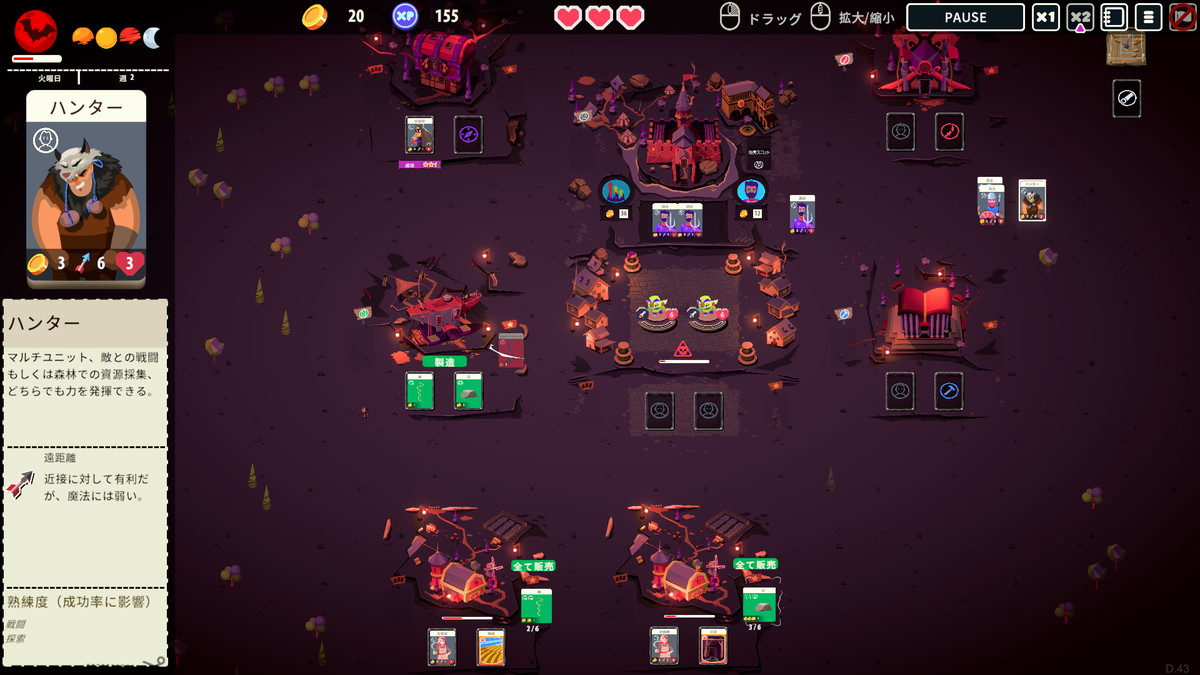 さらに、本作ではアイテムの合成だけでなく、人間のカードも「転職合成」によって多彩なキャラクターへと成長させることが可能。農夫を前線で戦う騎士やバイキング、魔法使いに育てたり、生産を支える鉱員や漁師に転職させたりと、その選択はすべてプレイヤー次第。