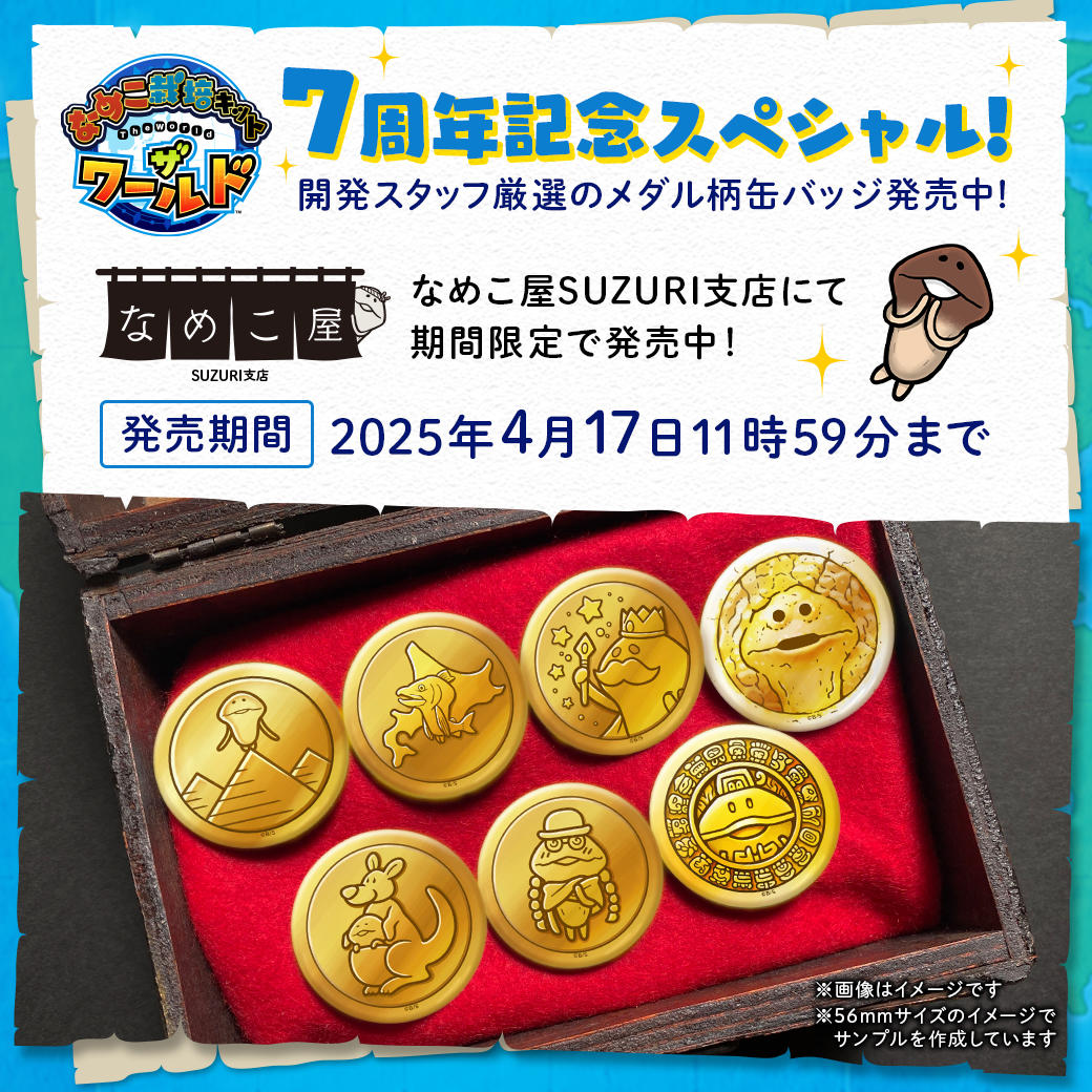 『なめこ屋 SUZURI支店』にて、開発スタッフ厳選の土地メダル7種をあしらった缶バッジを発売中!4月17日までの期間限定となるので、お見逃しなく!