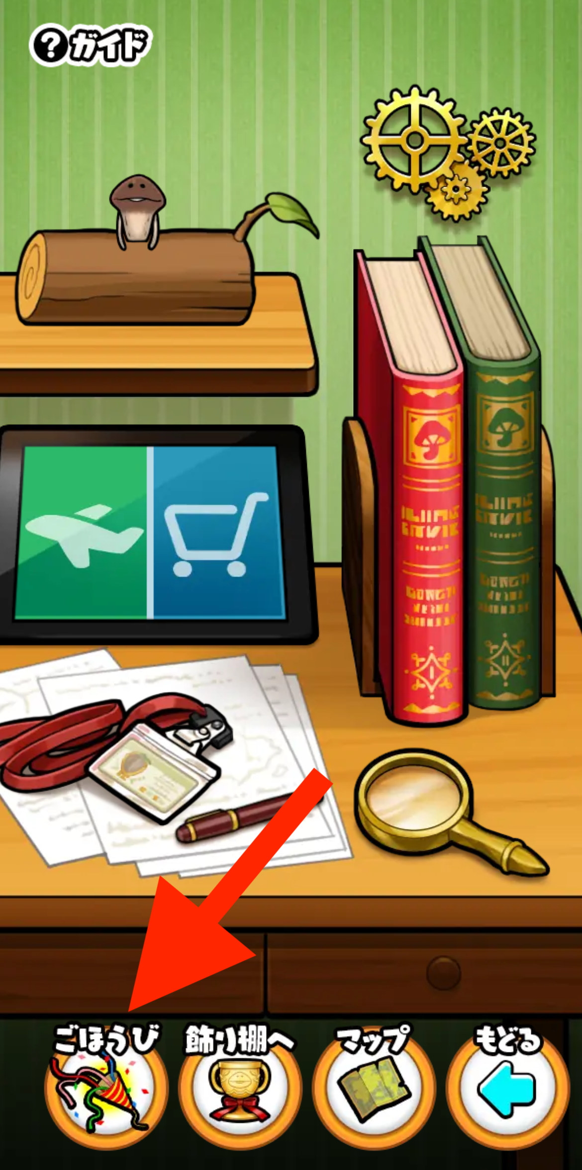ゲットしたごほうびイラストは、研究室の「ごほうび」ボタンからいつでも見ることができる。