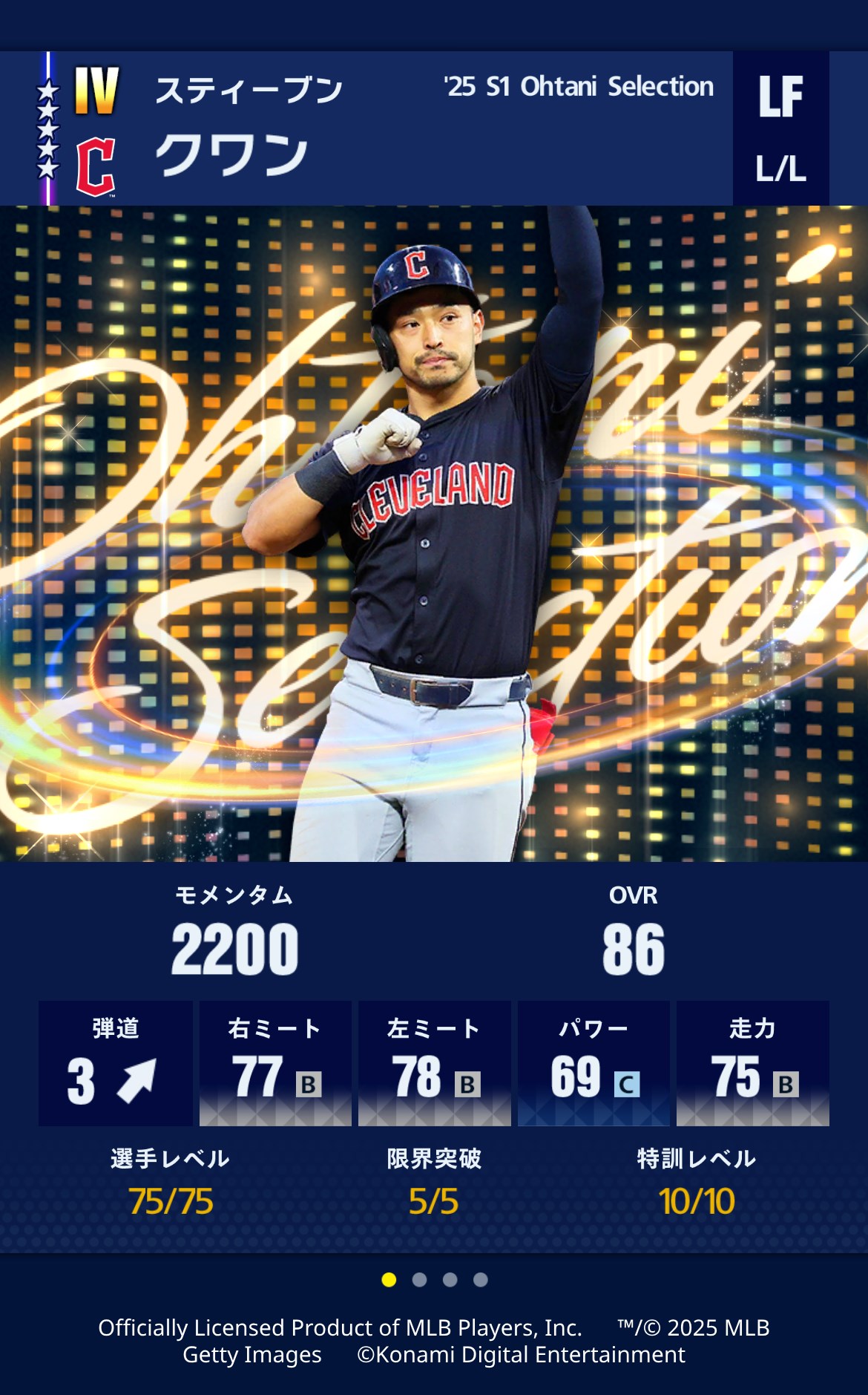 (C) 2024 MLB Advanced Media, L.P. Major League Baseball trademarks and copyrights are used with permission of Major League Baseball. Visit MLB.com. Officially Licensed Product of MLB Players, Inc. MLBPA trademarks, copyrighted works and other intellectual property rights are owned and/or held by MLBPA and may not be used without the written consent of MLBPA or MLB Players, Inc. Visit www.MLBPLAYERS.com the Players Choice on the web. "Major League Baseball"(or "Major League") is a registered trademark owned by Major League Baseball Properties, Inc., used under license. Getty Images All other copyrights or trademarks are the property of their respective owners and are used under license. (C)Konami Digital Entertainment
