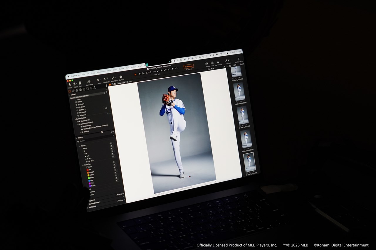 「大谷セレクション」のインタビュー撮影にあわせて、二刀流をイメージした新キービジュアルのスチール撮影、WEB広告用の動画撮影を行った。撮影終了後には、日ごろの感謝を込めて、大谷選手の愛犬・デコピン用のお皿を同社からプレゼント。大谷選手は、「かわいい」「喜ぶと思います」とコメントした。
