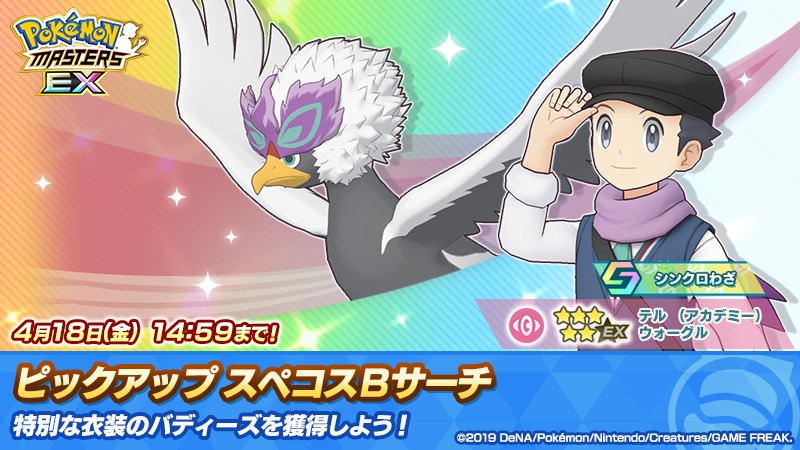 また、「★5タロ&グランブル」が登場する「タロピックアップ ポケマスフェス」と「★5テル(アカデミー)&ウォーグル」が登場する「テルピックアップ スペコスBサーチ」を開催中。