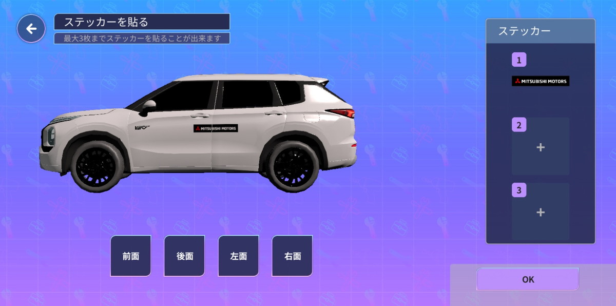 ・ クルマを好きな色に変えたり、ステッカーを貼ったりと自分らしいクルマにカスタマイズすることが可能