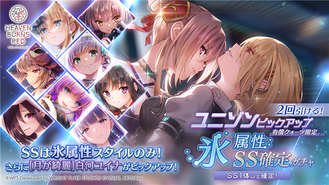 「ユニゾンピックアップ 氷属性SS確定ガチャ」は有償クォーツ限定で引くことができ、期間限定SS[月が綺麗] 白河ユイナがピックアップされ、提供割合がアップする。10連目はSS氷属性スタイルが確定で出現する。