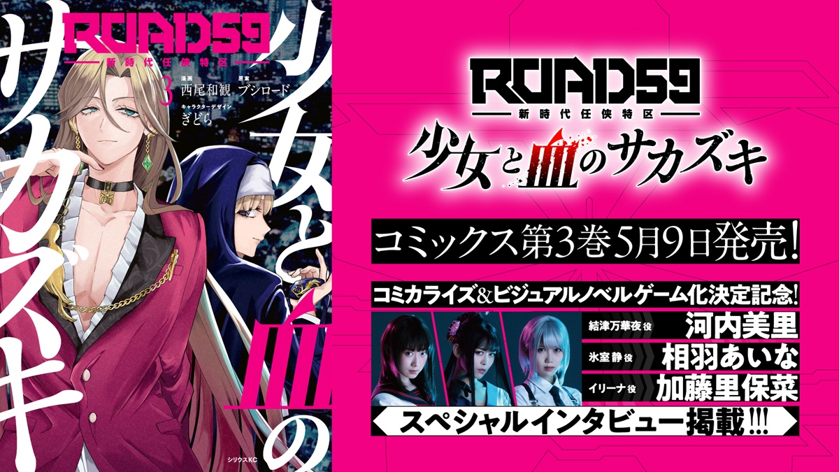 ・ブシロード、『ROAD59 -新時代任侠特区- 少女と血のサカズキ』第3巻が5月9日に発売決定…華夜役 河内美里&静役 相羽あいな&イリーナ役加藤里保菜のSPインタビューも
