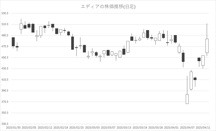 エディア<3935>が大幅続伸。この日、25年2月期の連結決算を発表し、売上高36億0700万円(前の期比10.1%増)、営業利益2億6200万円(同62.6%増)と大幅増益を達成した。続く26年2月期も売上高40億円(同10.9%増)、営業利益3億5000万円(同33.2%増)と引き続き増益を見込んでいる。同時に、発行済株式総数の8%に相当する50万株・2億円を上限とする自己株式の取得を行うことも明らかにした。