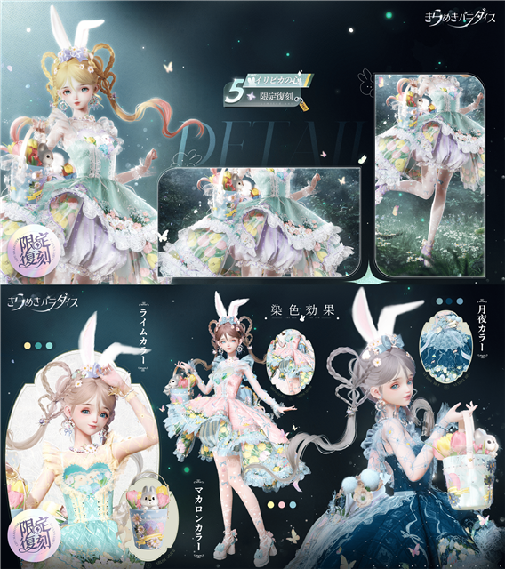 VVANNA STUDIOは、次世代ガールズドリームRPG『きらめきパラダイス~自由につくれる夢の世界へようこそ~』において、限定星5セットコーデ「イリピカの心」、「眠りのゴロゴロ」が復刻することを発表した。88日間の長期ガチャ『おとぎの箱』には「狂想ラビット」が登場し、今月は大人気のアニマルコーデ月間!このチャンスをぜひお見逃しなく!