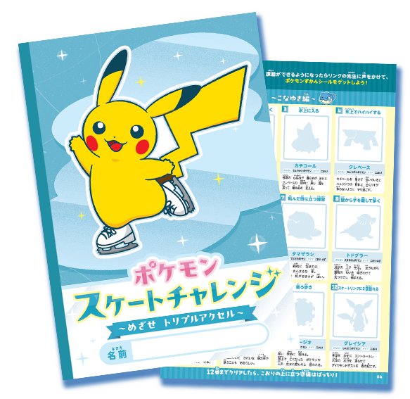 スケートリンクに来場した子どもたちを対象に、「ポケモン スケートチャレンジ ~めざせトリプルアクセル~」を順次、配布する。