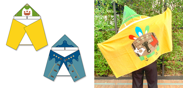 フードを被るだけで「ハンター」と「オトモアイルー」になりきれる「フード付きタオル」は、頭や首、肩周りを日差しや小雨から守ってくれるので、野外フェスやスポーツ観戦、アウトドアでの環境の変化にも対応できるハンター必需アイテム。