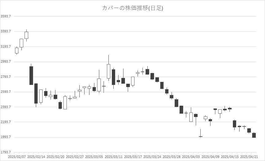 このほか、カバー<5253>が年初来安値を更新し、イオレ<2334>、GLOE<9565>、monoAI technology<5240>なども大きく売られた。