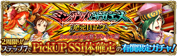 「2周限り!ステップ7でPickUPSS1体確定の有償限定ガチャ!ミンサガ&サガエメ発売日記念 Romancing祭 ジャミル編」