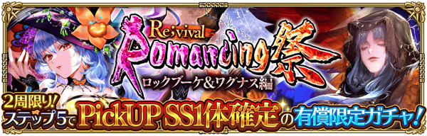 「2周限り!ステップ5でPickUPSS1体確定の有償限定ガチャ!Romancing祭Re;vival ロックブーケ&ワグナス編」