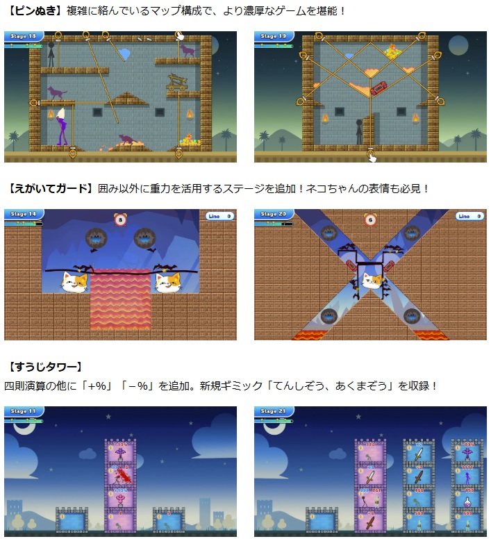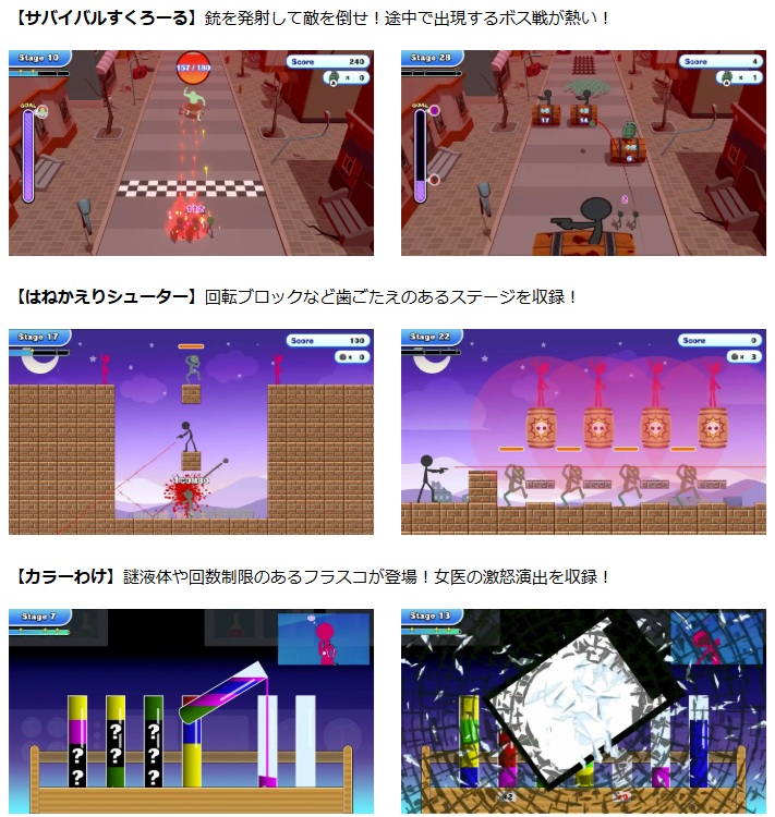 ※ステージ数は、完全新規124ステージと『あのげー』『あのゲー2』に登場したステージを チュートリアルとして再収録した31ステージ合計で155ステージとなります。