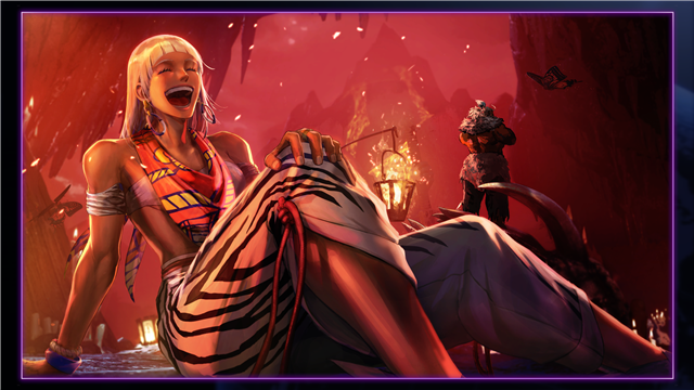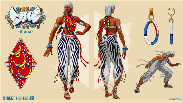ケニア出身のエレナは、1997年にリリースされた『ストリートファイターIII』シリーズから初登場したキャラクター。雄大なるアフリカの自然が育んだ大らかな心を持つ彼女は危機に直面しても常にポジティブ。『ストリートファイター6』では、友人である豪鬼との激しい戦いの後、豪鬼が教えてくれた教訓の意味を探し求めて再び世界を旅する。