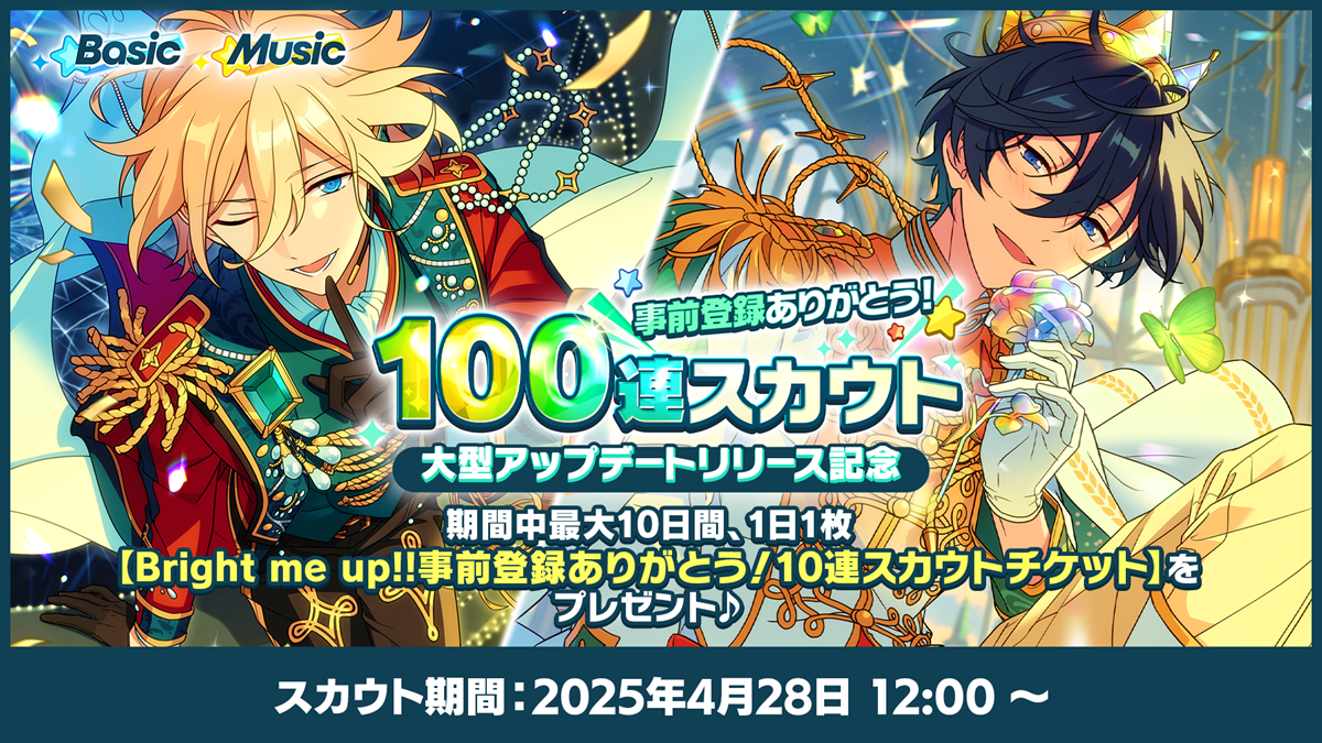 さらに、10日目には★5カードが1枚以上確定の【Bright me up!!事前登録ありがとう!★5確定10連スカウトチケット】をプレゼント!