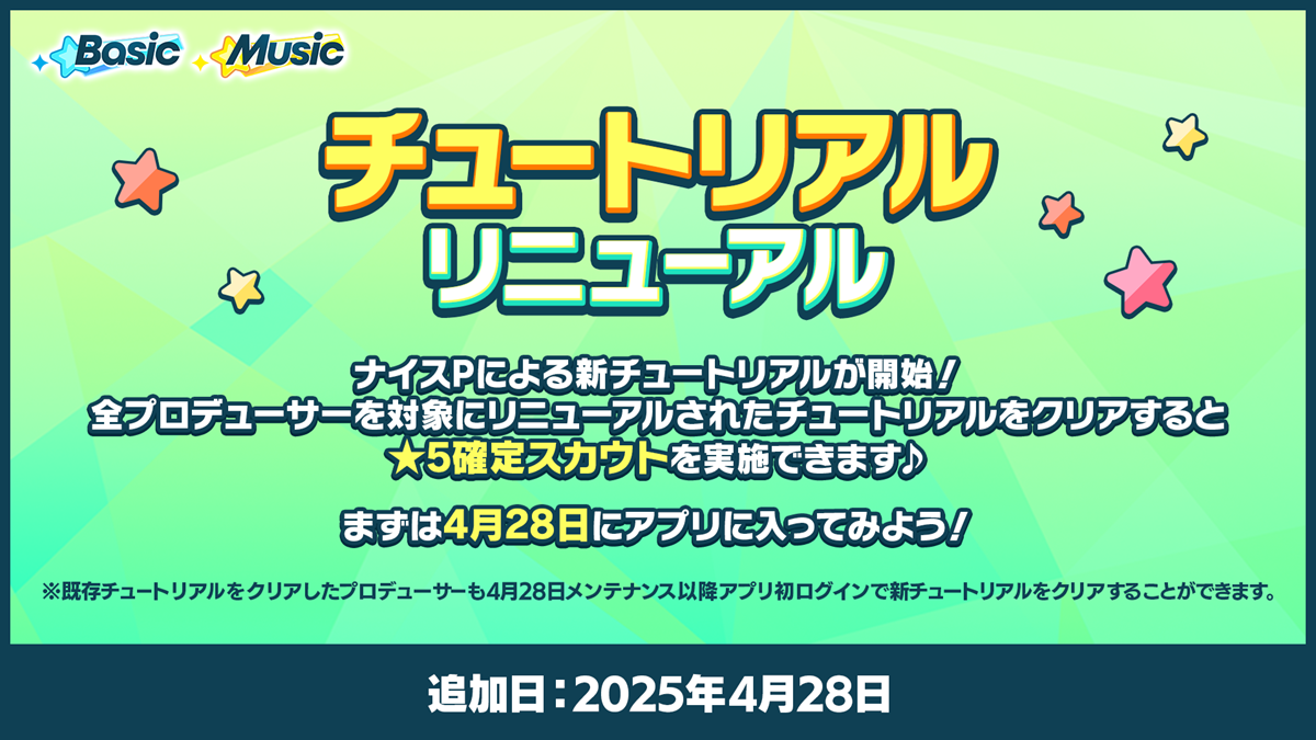 ※以前のチュートリアルをクリアしたユーザーも、4月28日のメンテナンス以降のアプリ初ログインで新チュートリアルが開始されます。