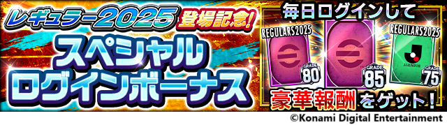 また、レギュラーカードの登場を記念したキャンペーンを開催中。期間中、ログインするだけで「G80以上レギュラー2025ガチャ券」などが手に入る「レギュラー2025登場記念!スペシャルログインボーナス」や、総勢440名の選手が2025シーズンのデータで収録された「レギュラーカード」が手に入る「レギュラー2025登場11連ガチャ」を開催している。