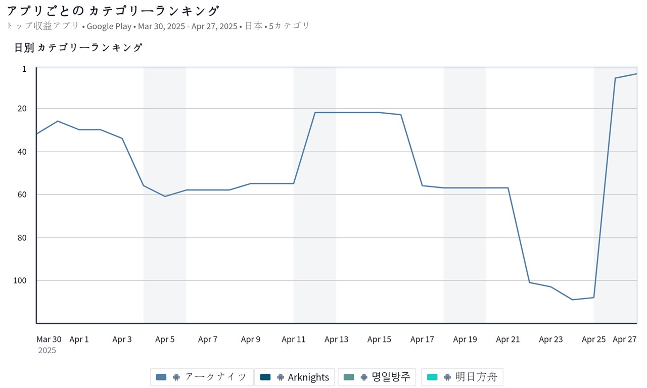 | 4 | ↑105 | アークナイツ | Yostar |