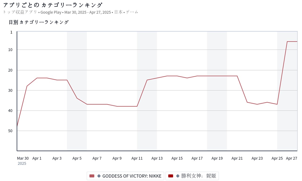 | 6 | ↑30 | 勝利の女神:NIKKE | Level Infinite |