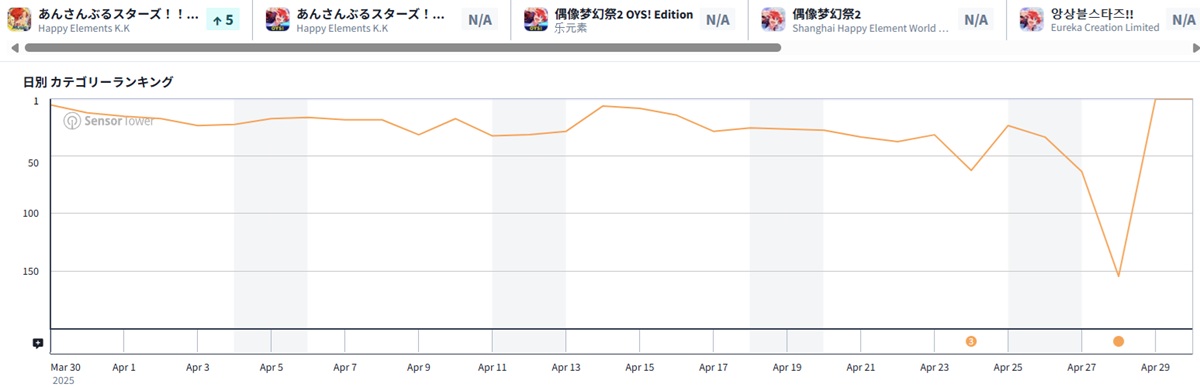 | 1 | 155 | ↑154 | あんさんぶるスターズ!!Music | Happy Elements |