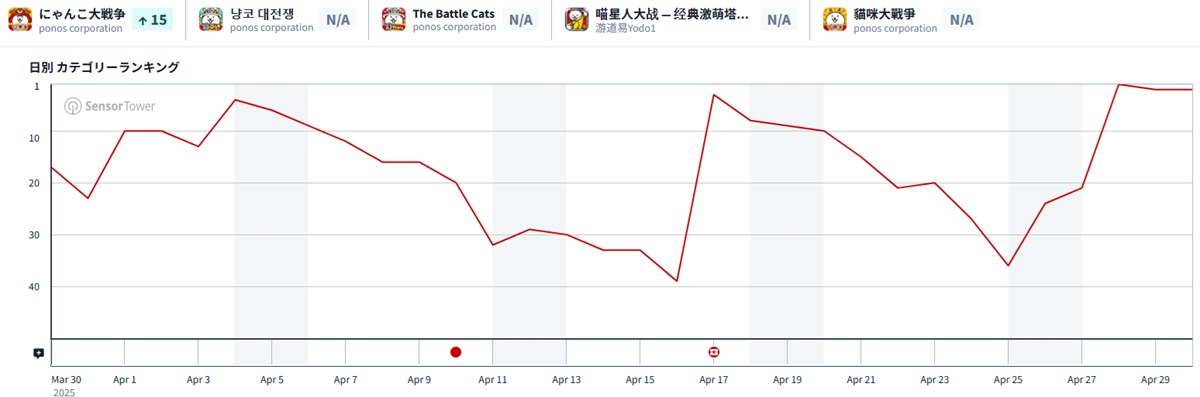| 2 | 21 | ↑19 | にゃんこ大戦争 | ポノス |