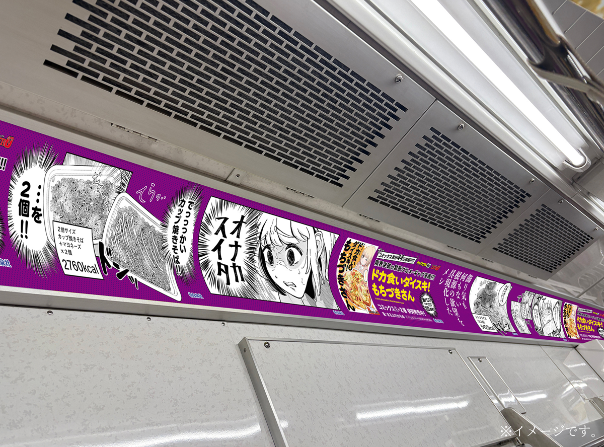 白泉社は、4月28日(月)に待望の第2巻が発売されたばかりの『ドカ食いダイスキ!もちづきさん』(まるよのかもめ)について、最新刊発売を記念して、京王井の頭線にて「京王井の頭線車内ジャック(1編成)」を実施中だ。