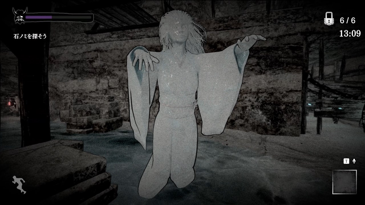 「雪女」は足音を立てず、滑るように素早く移動するため、しっかりと聞き耳を立てないと気付いた時には…。プレイヤーを見つけるとこちらに向かって吹雪を吐いてくるので、要注意。避けなければ氷漬けになってしまい…。また、雪女が凍らせた床は滑るので、やみくもに逃げ回っていては追いつかれてしまうだろう。