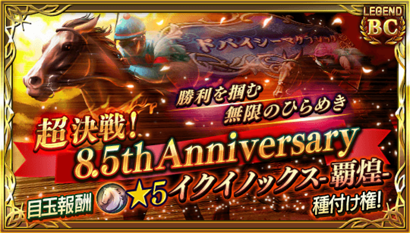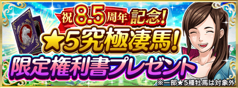 ■8.5周年記念!★5種牡馬限定権利書と豪華!期限付きアイテムをプレゼント