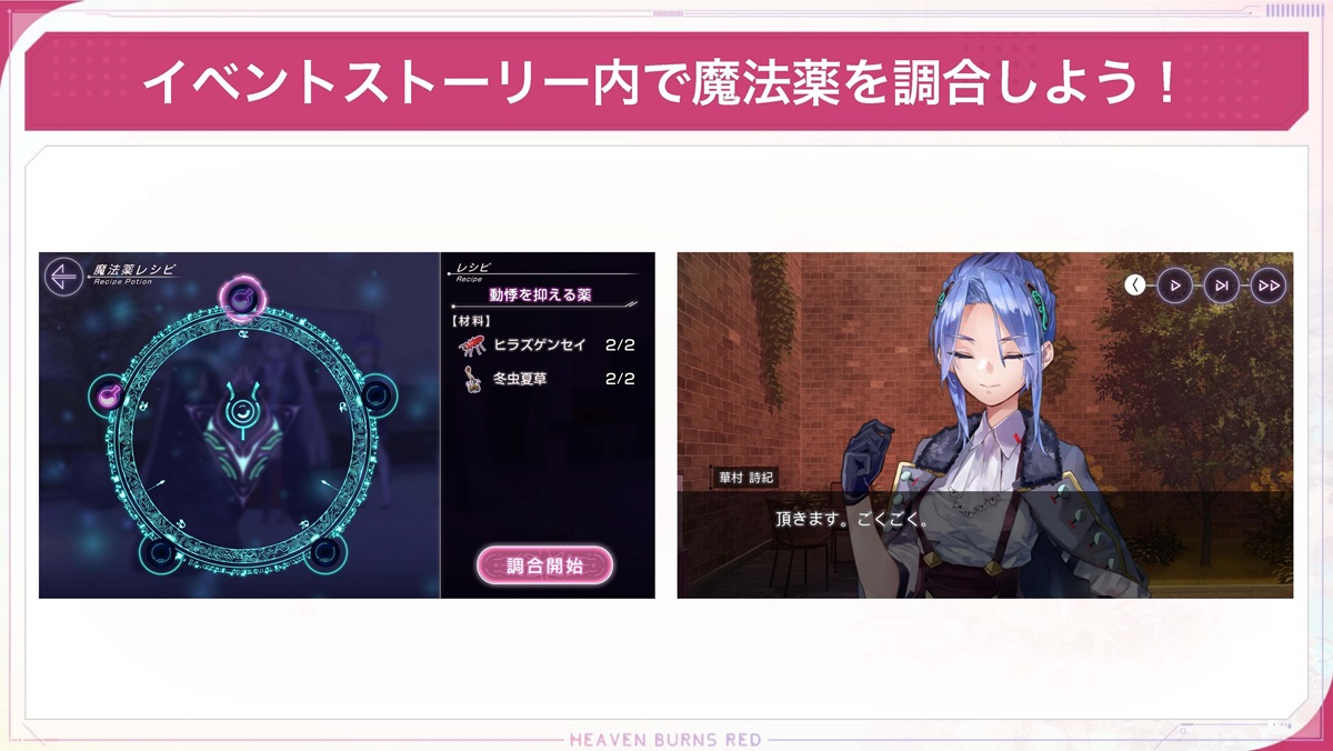 また、本イベントではストーリー内で魔法薬を調合することができる。