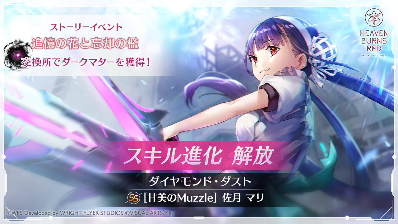 「ダークマター」を使用することで、SS[甘美のMuzzle] 佐月マリのEXスキル「ダイヤモンド・ダスト」を進化させることができる!