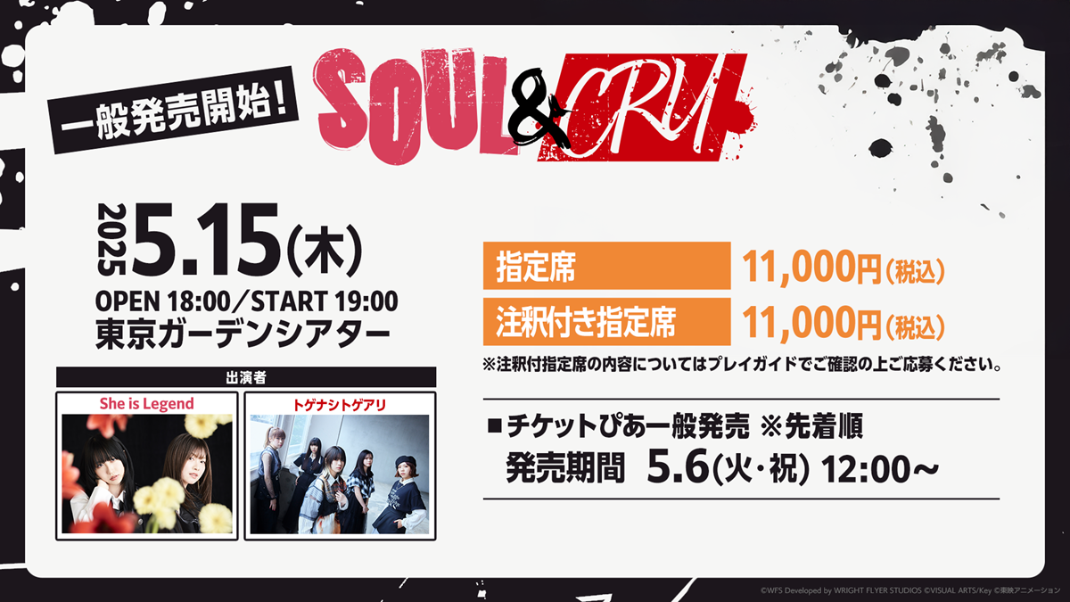 She is Legendとトゲナシトゲアリの対バンライブ「SOUL & CRY」、チケット<一般発売>とグッズ情報公開!