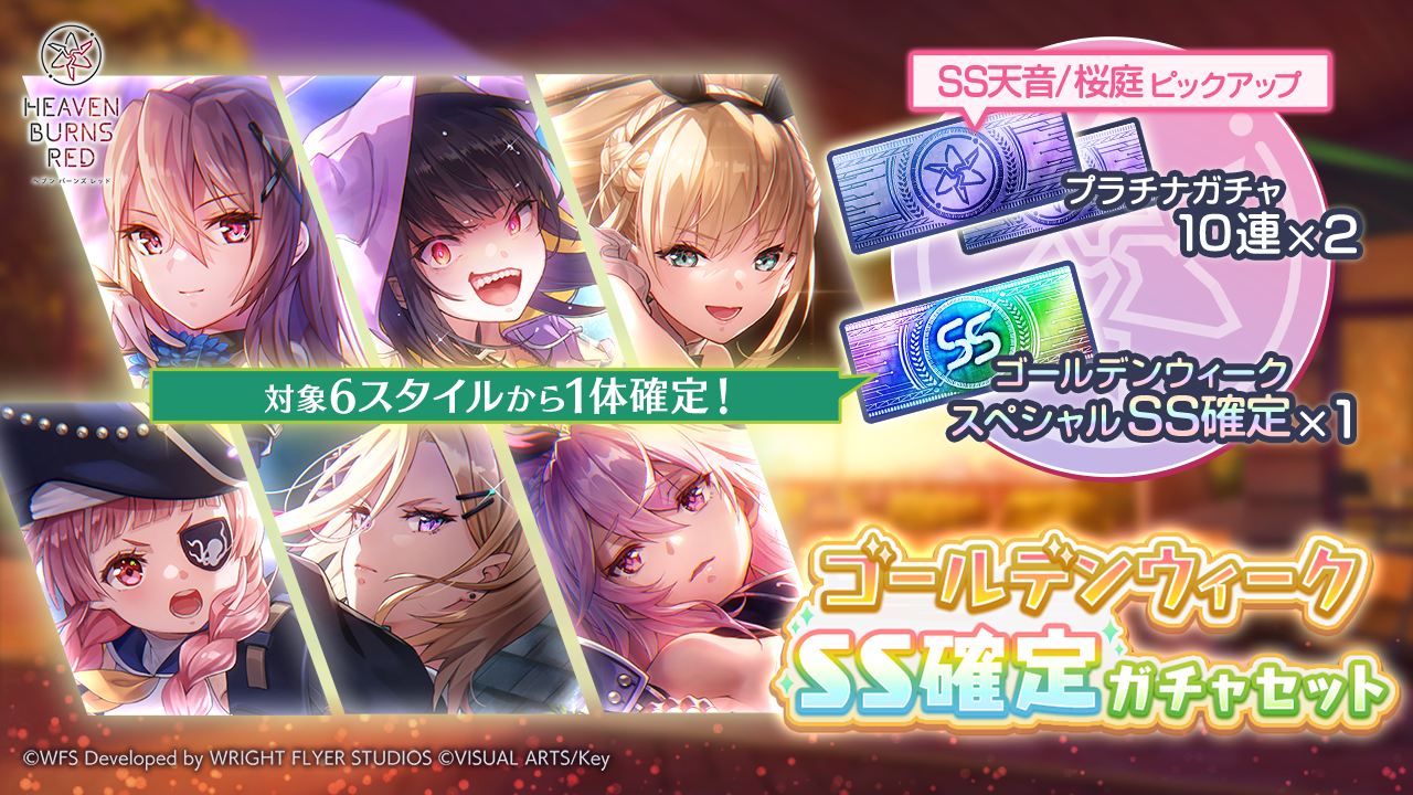 「ゴールデンウィーク スペシャルSS確定チケット」と「プラチナガチャ10連チケット」がセットになった、「ゴールデンウィーク SS確定ガチャセット」を販売。
