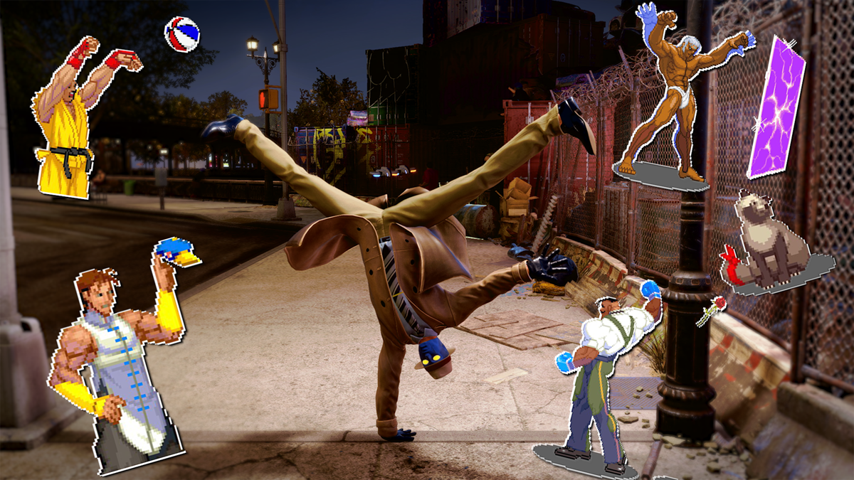 今回の「ファイティングパス」プレミアム報酬では、エレナが初参戦した「ストリートファイターIII」シリーズにも登場していたキャラクターたちの愛用品である「ヤンの髪型のかつら」「ユンのスケートボード」の他、「Qのマスク」や「レミーの上着」、「オロの天狗石」などのアイテムをゲットできる! 各キャラクターの衣装を纏って、「バトルハブ」や「ワールドツアー」で見せつけよう!