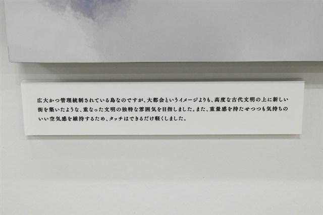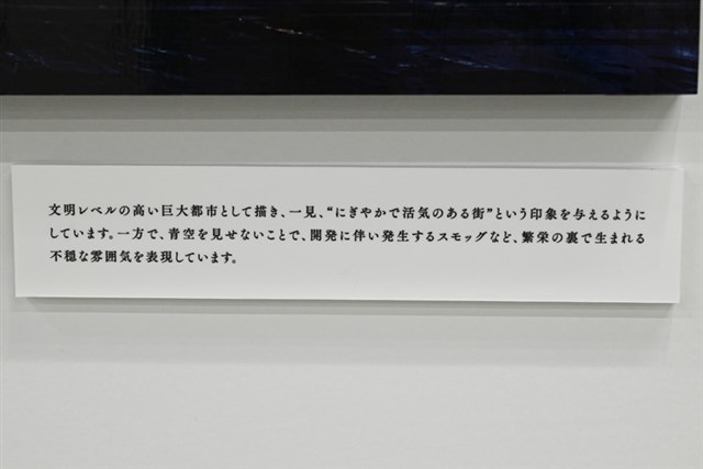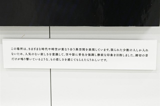 興味深いのは、いくつかの展示に添えられているクリエイターのメッセージ。背景アートを描いた際のイメージや想いが率直に語られており、それを読んでから作品を見ると、また違った印象を受ける。