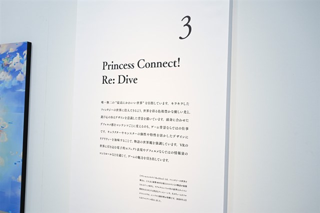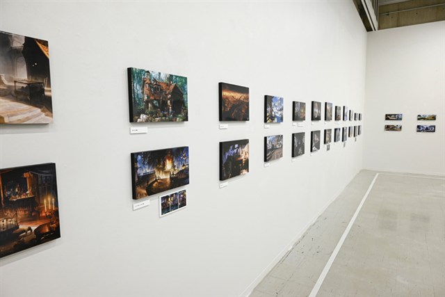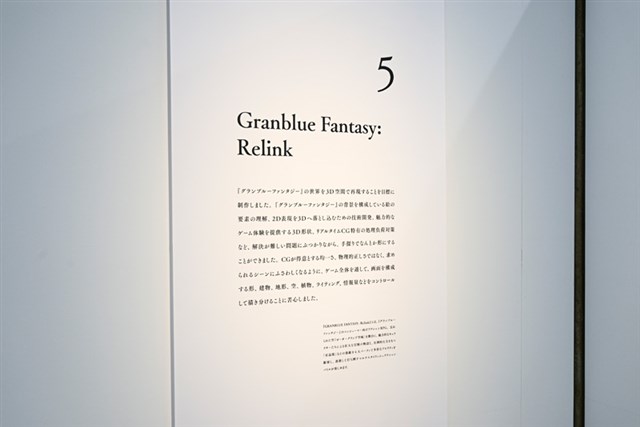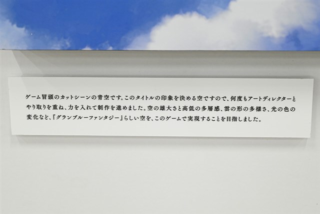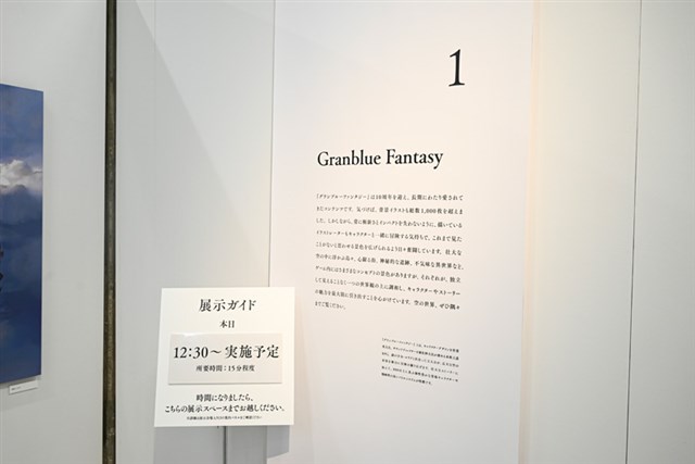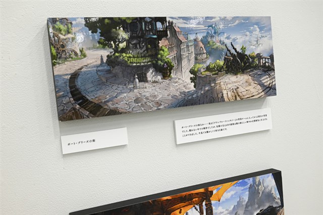 会場は順路に沿って見ていく形式で、『グランブルーファンタジー』『Shadowverse』『プリンセスコネクト!Re:Dive』『ウマ娘 プリティーダービー』『GRANBLUE FANTASY: Relink』『Shadowverse: Worlds Beyond』の作品順で背景画が展示されている。
