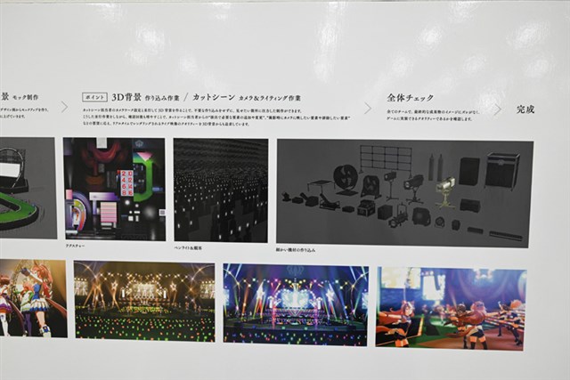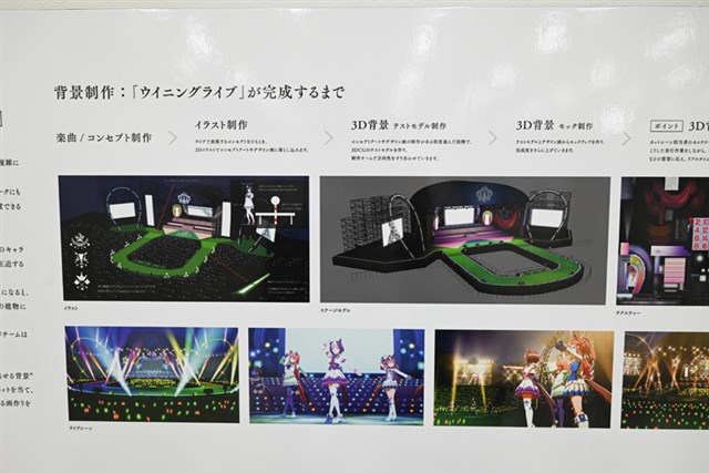 特にゲームの作風ごとに雰囲気がガラリと変わるのが面白い。例えば『グランブルーファンタジー』であれば「空の雄大さ」、『Shadowverse』であれば「ダークな重厚感」、『プリンセスコネクト!Re:Dive』であれば「可愛らしさ」。また、『ウマ娘 プリティーダービー』は3Dモデルでの表現となり、ウイニングライブの舞台制作では「臨場感」を重視し、現実のライブ演出さながらの光や空気感を加えている。