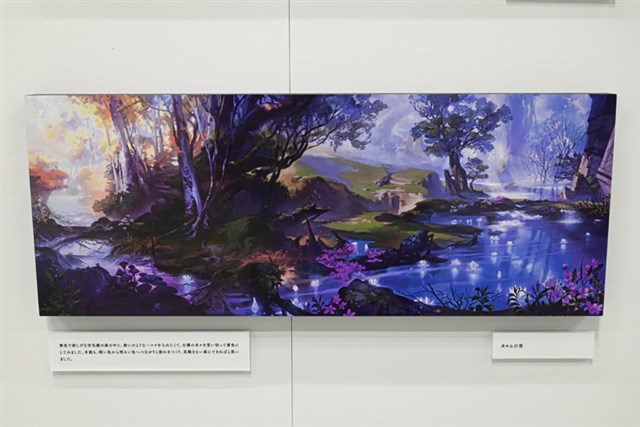 背景アートは、ゲーム中ではキャラクターやUIに隠れてしまうことが多く、じっくり眺める機会は限られている。しかし、ゲーム世界の空気感を表現するうえで欠かせない重要な要素であり、そこにはクリエイターたちの想いや工夫が詰まっている。本展では、そうした背景アートを細部までじっくり鑑賞できる、非常に貴重な機会となっているのだ。
