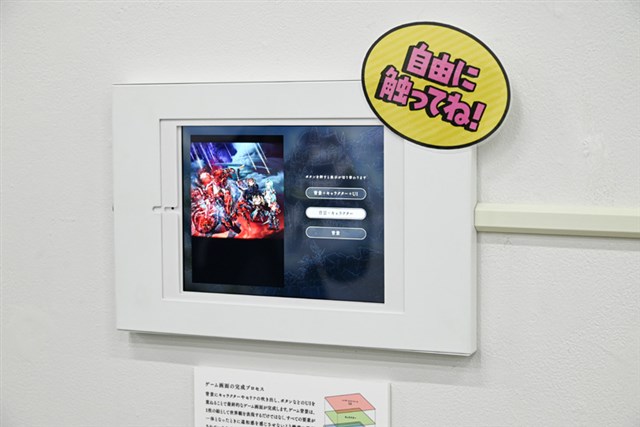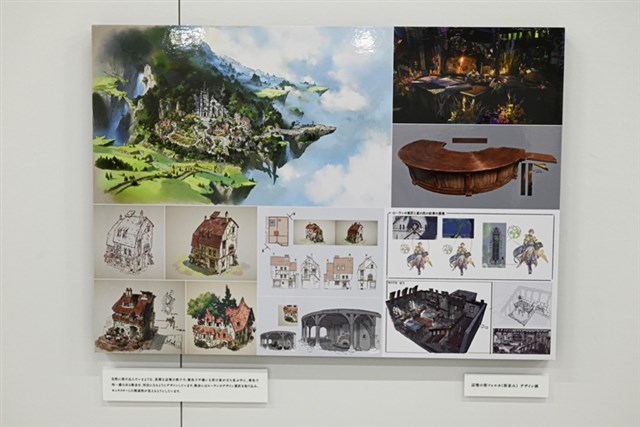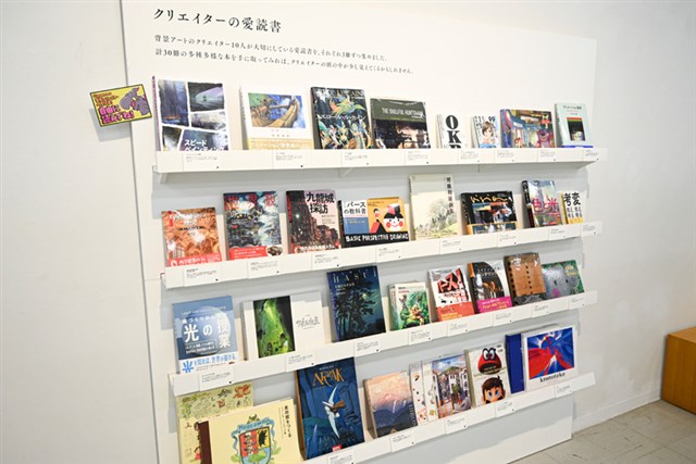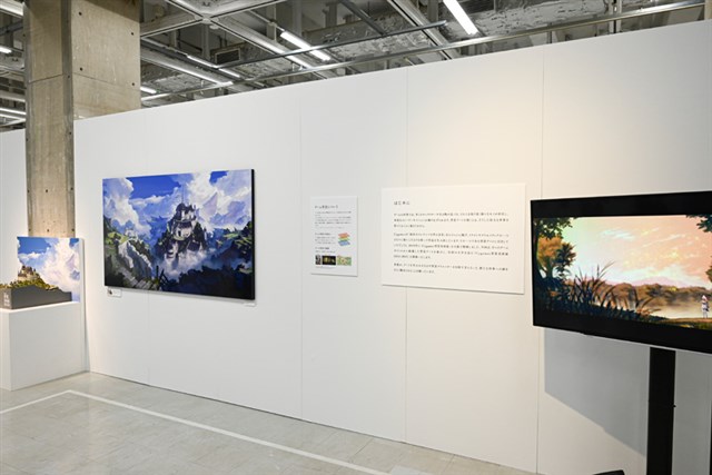 さらに、展覧会のキービジュアルを立体的に再現した「ジオラマ」や、背景アートならではの時間や天候などの変化を体感できる「タッチパネル」、Cygamesのクリエイターの仕事環境を再現した「クリエイターズデスク」、クリエイターが影響を受けた書籍を紹介する「クリエイターの愛読書」、学生からの質問と回答を紹介する「クリエイターの30の質問」など、本展でしか見られない貴重な展示が多数用意されているのが特徴だ。