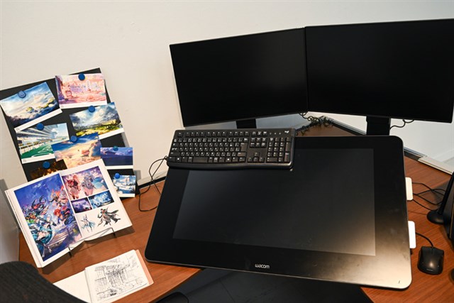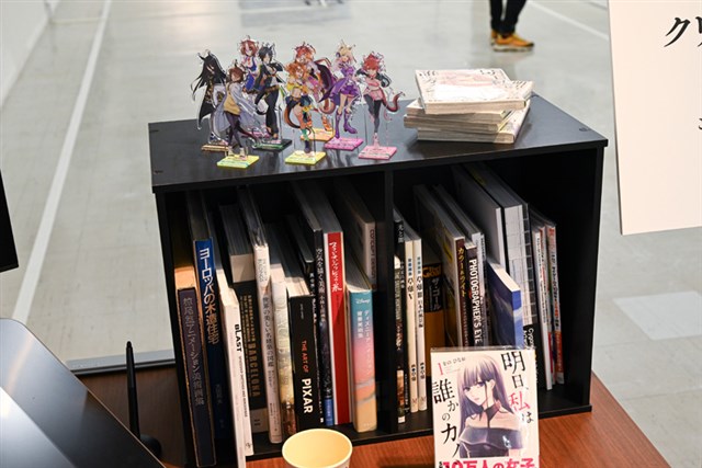「30のQ&A」では実践的な内容から心構えなど、今後プロのクリエイターになっていくであろう学生からの質問にまっすぐに回答。「クリエイターの愛読書」では、計30冊の本が展示されており、自由に読むことができる。「クリエイターズデスク」では、実際に使用しているPCやタブレットのほか、書籍やアクリルスタンドなどもあり、なんともプライベートな雰囲気も。