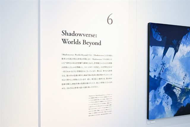 会場では、『ウマ娘 プリティーダービー』や『グランブルーファンタジー』をはじめ、2025年6月17日(火)リリース予定の新作タイトル『Shadowverse: Worlds Beyond』を含む、計6作品から200点以上の背景アートを展示。