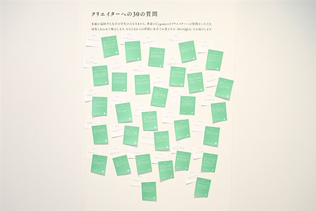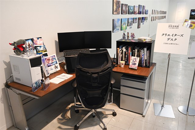 背景アートのほかにも、大学の学生からCygamesのクリエイターへの質問に答える「30のQ&A」、背景アートのクリエイター10人が大切にしている書籍を展示する「クリエイターの愛読書」、Cygamesのクリエイターの机を再現した「クリエイターズデスク」といった特別コーナーも設けられている。