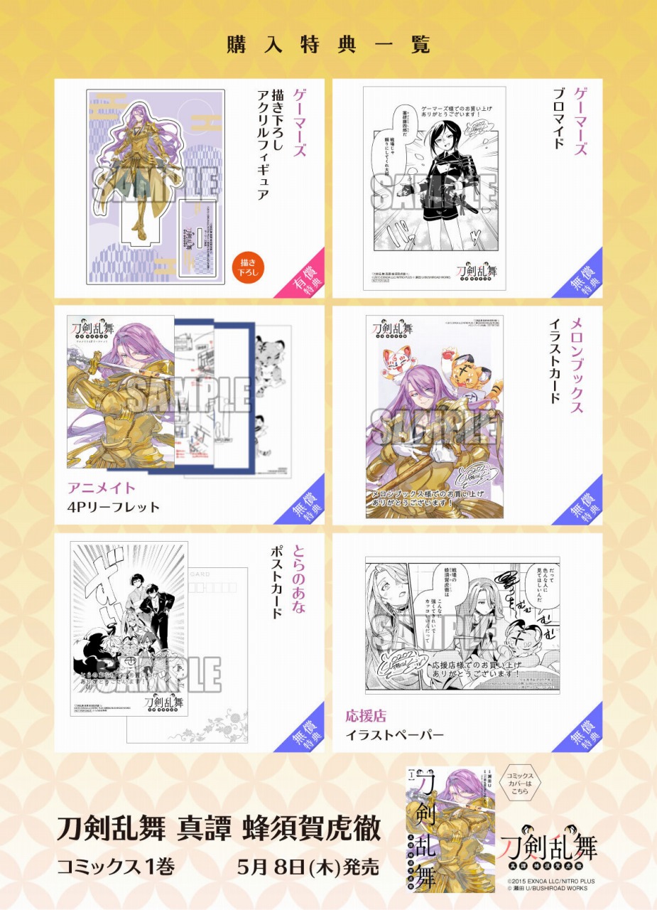 ブシロード<7803>のグループ会社にあたるブシロードワークスは、「コミックグロウル」で好評連載中の『刀剣乱舞 真譚 蜂須賀虎徹』第1巻が本日5月8日に発売した。