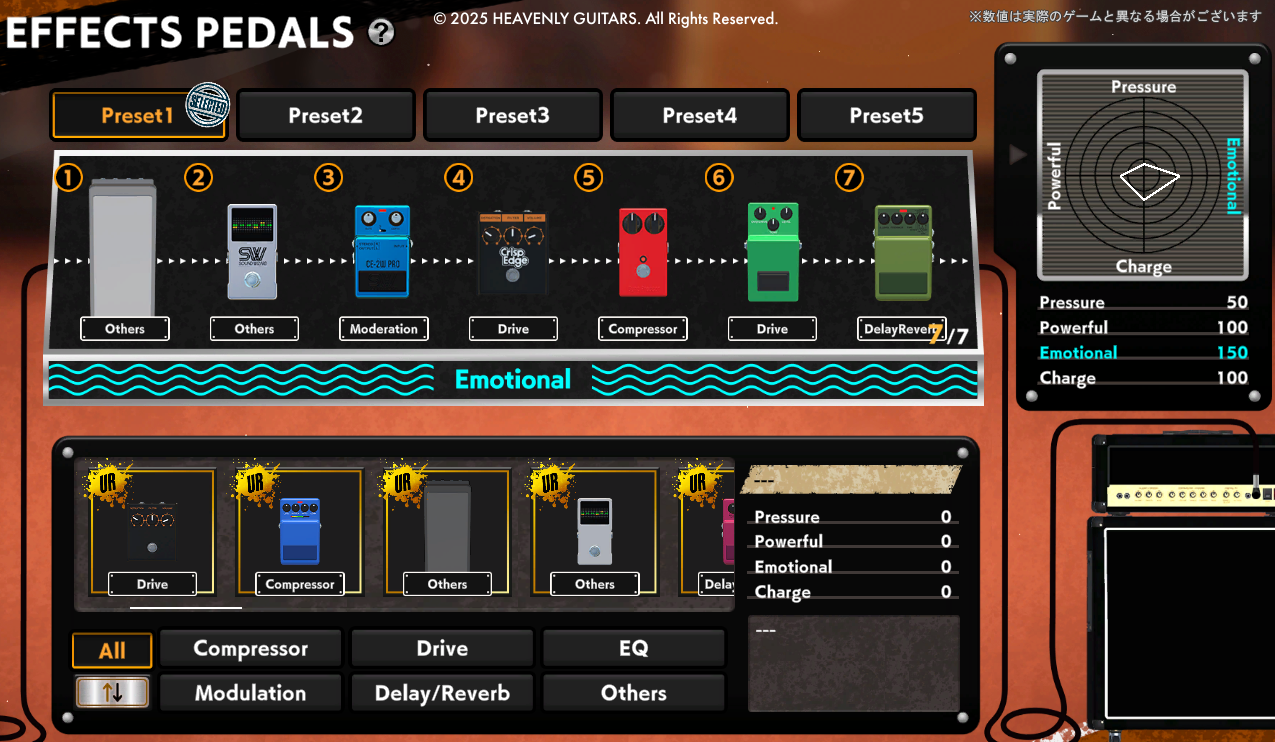 プレイヤーはギター・エフェクター・アンプ・ギタリストアバターを自由に選択、一部はカスタマイズすることが可能となっており、自分らしいスタイルでの演奏を楽しめる。