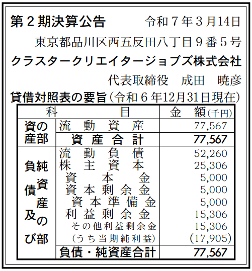 また、子会社クラスタークリエイタージョブズの2024年12月期の決算は最終利益1700万円と黒字転換した。前の期2023年12月期の実績は最終損失200万円だった。「cluster」を利用し、企業とクリエイターをつなげるコンテンツ制作やイベント運営を行っているという。